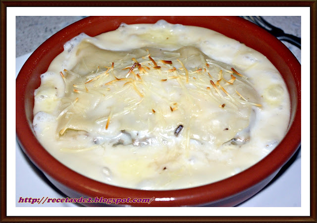 LASAÑA CASERA DE PASTA FRESCA, QUESO Y SETAS AL VINO BLANCO