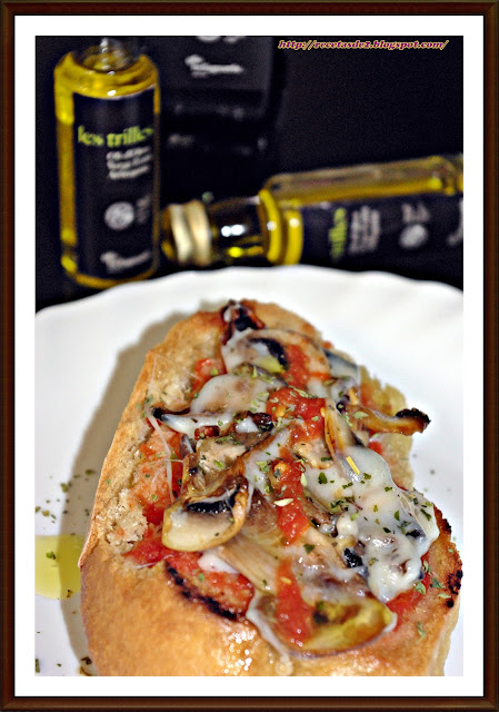 - EN LA CUARTA ESTACIÓN PONEMOS CHAMPIÑONES LAMINADOS Y COMO TRUCO PARA QUE QUEDEN MEJOR LOS VAMOS A PINCELAR CON ACEITE DE OLIVA.