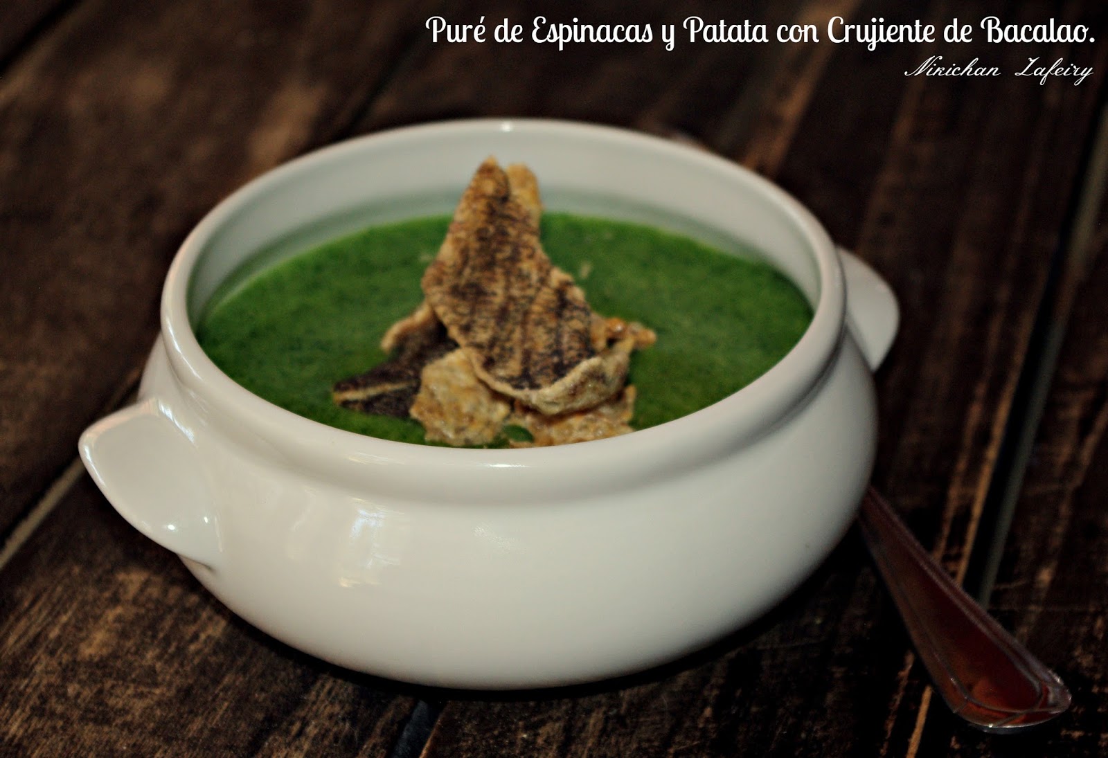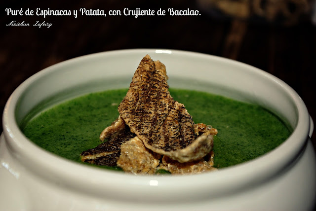 Puré de Espinacas y Patata con Crujiente de Bacalao