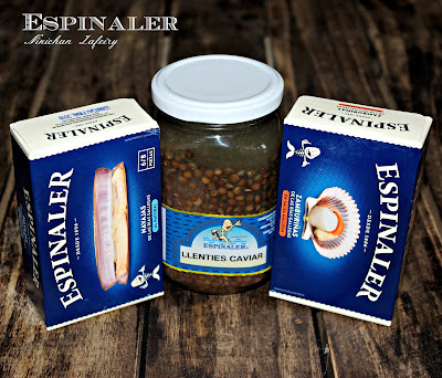 Para esta receta yo utilicé lentejas beluga, conocida también como lenteja caviar, es la variedad de esta legumbre con el mayor nivel de proteína. De un color más oscuro que las habituales. Su aspecto me pareció perfecto para esta receta. Podéis encontrarlas en Espinaler una empresa centenaria especializada en conservas gourmet. Os invito a visitar su web y sus más de 300 productos especializados entre conservas de pescado y vegetales, vermut de elaboración propia y por su puesto su producto estrella " La salsa espinaler" Yo me decanté por los productos que veis en la fotografía para probarlos y me quedé muy contenta.