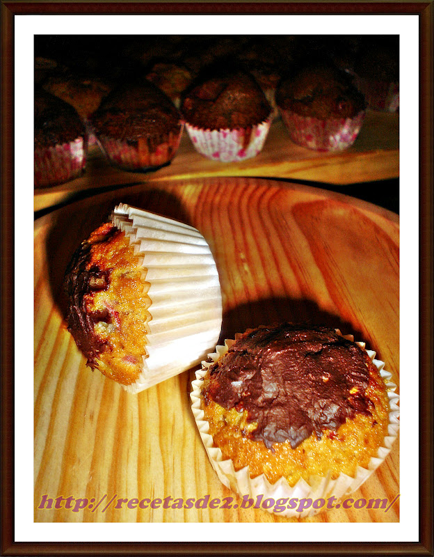 Engrasamos los moldes si es necesario. Yo los forré con cestitos de papel rizado y ya no fue necesario.