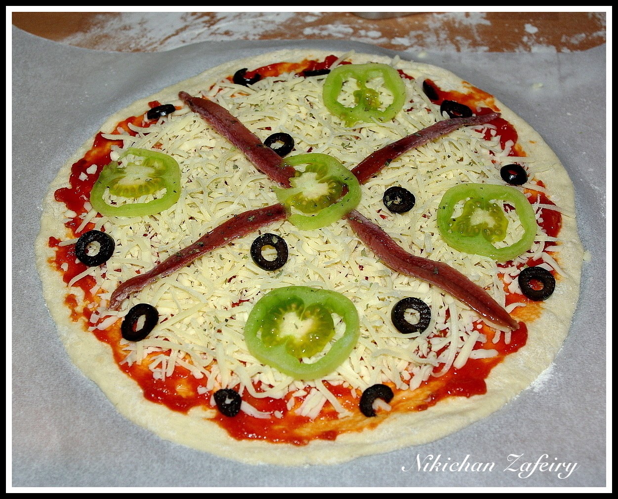 Si os gustan los bordes generosos, alveolados y esponjosos no os olvidéis de dejar una buena cantidad de masa en el borde exterior aun que sea una masa fina la que soporte el ingrediente.